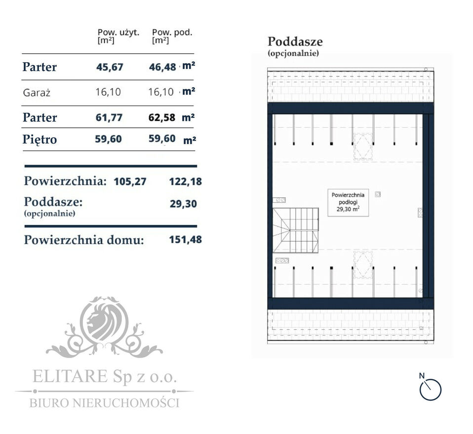 Dodatkową opcją jest możliwość adaptacji nieużytkowego poddasza o powierzchni 29,30m2!